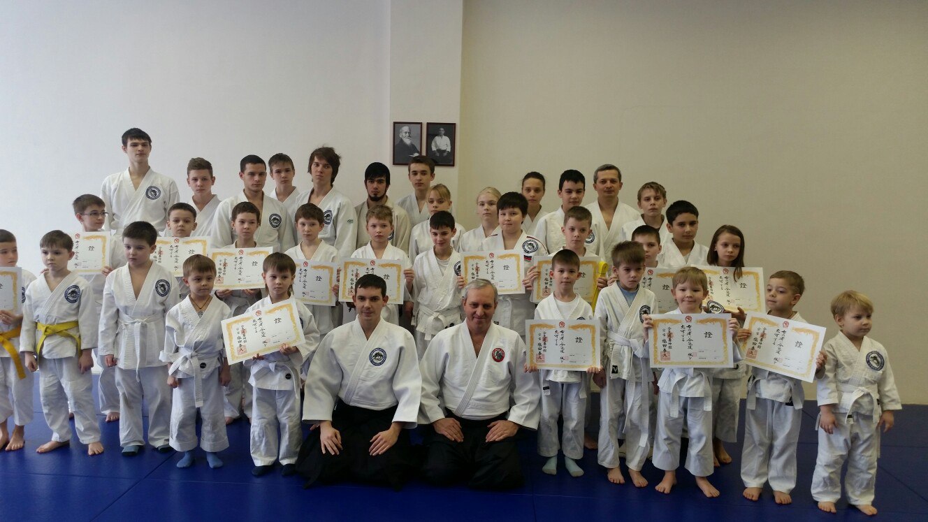 В конце семинара состоялась аттестация на ученические степени Кю. Василий Борисович отметил отличную аттестацию следующих учеников: Якубович Алексей (9 Кю), Шершуков Евгений (8 Кю), Мясников Сергей (5 Кю).